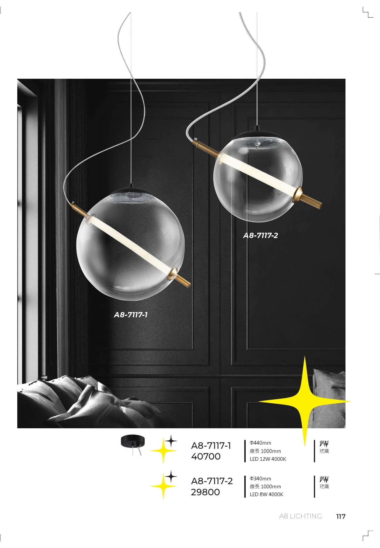 A8-7117-2 Φ340mm 線長 1000mm LED 8W 4000K 玻璃 鐵藝