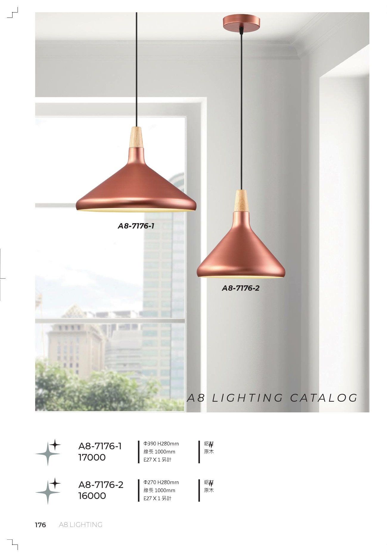 A8-7176-2 Φ270 H280mm 線長 1000mm E27 X 1 另計 鋁材 原木