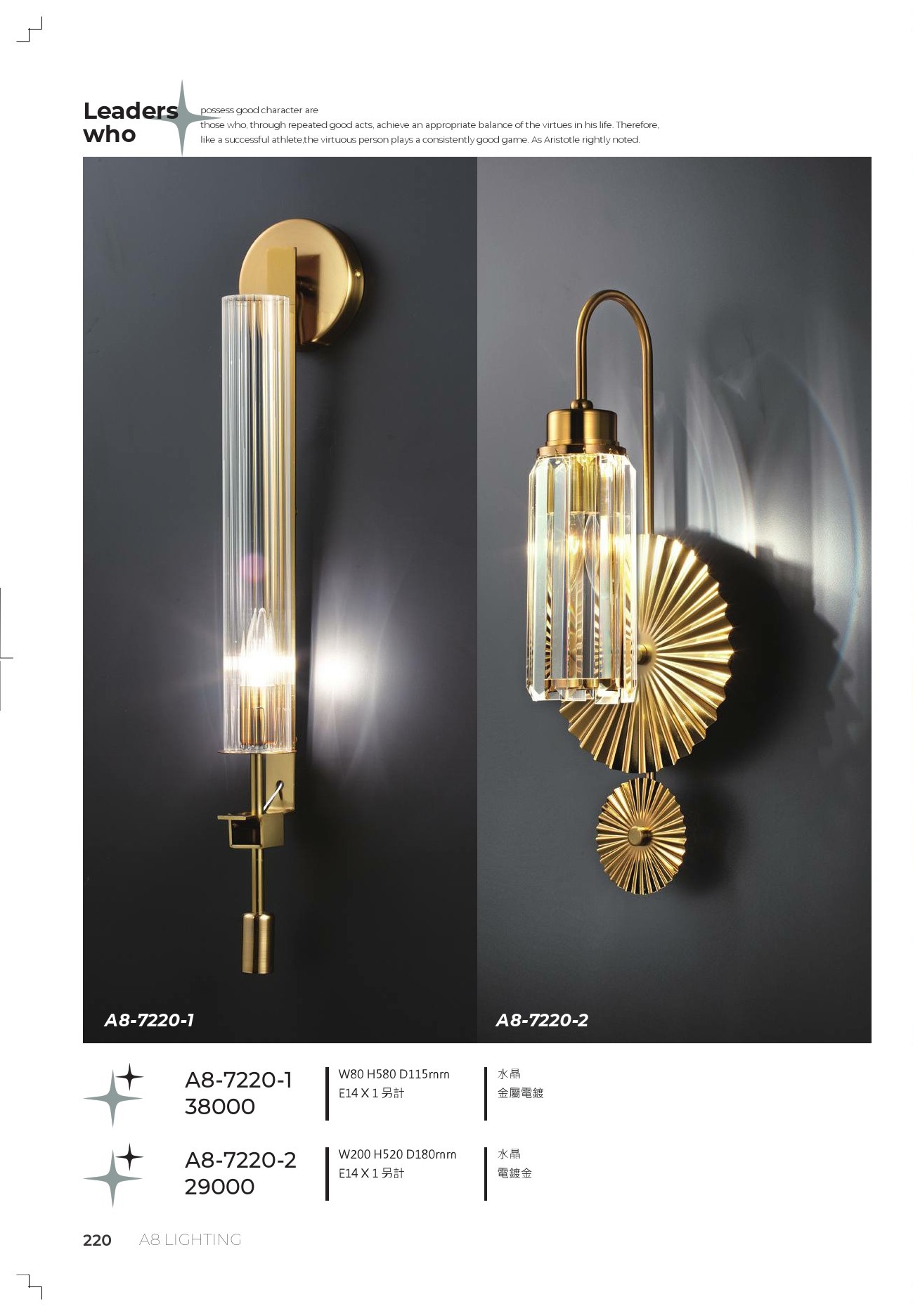A8-7220-2 W200 H520 D180mm E14 X 1 另計 水晶 電鍍金