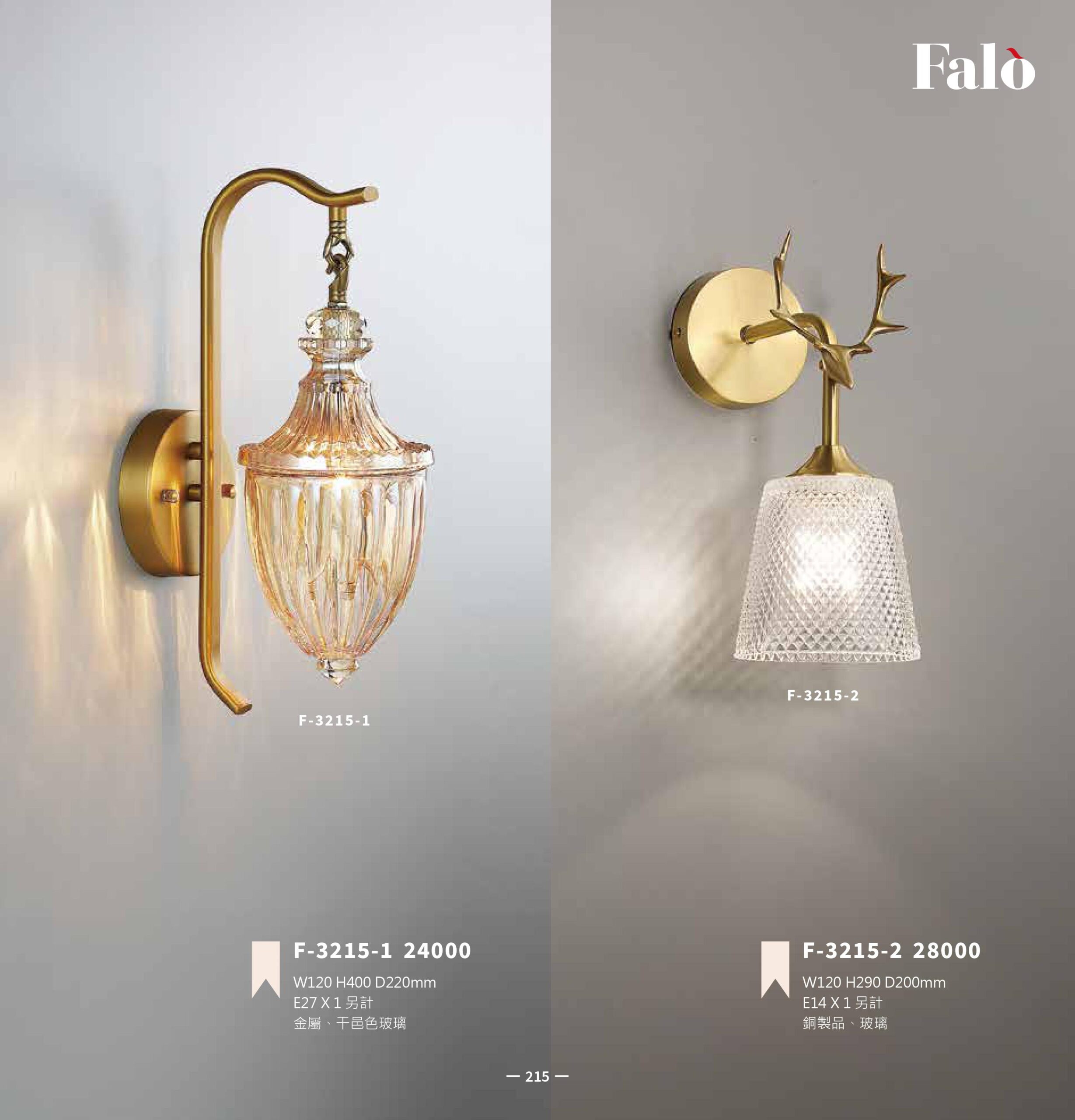 F-3215-1 W120 H400 D220mm E27 X 1 另計 金屬、干邑色玻璃