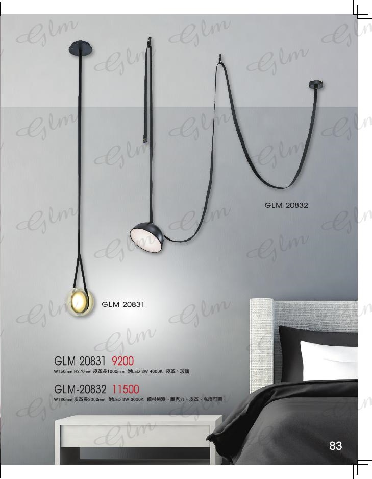 GLM-20831 W150mm H270mm 皮革長1000mm 附LED 8W 4000K 皮革、玻璃