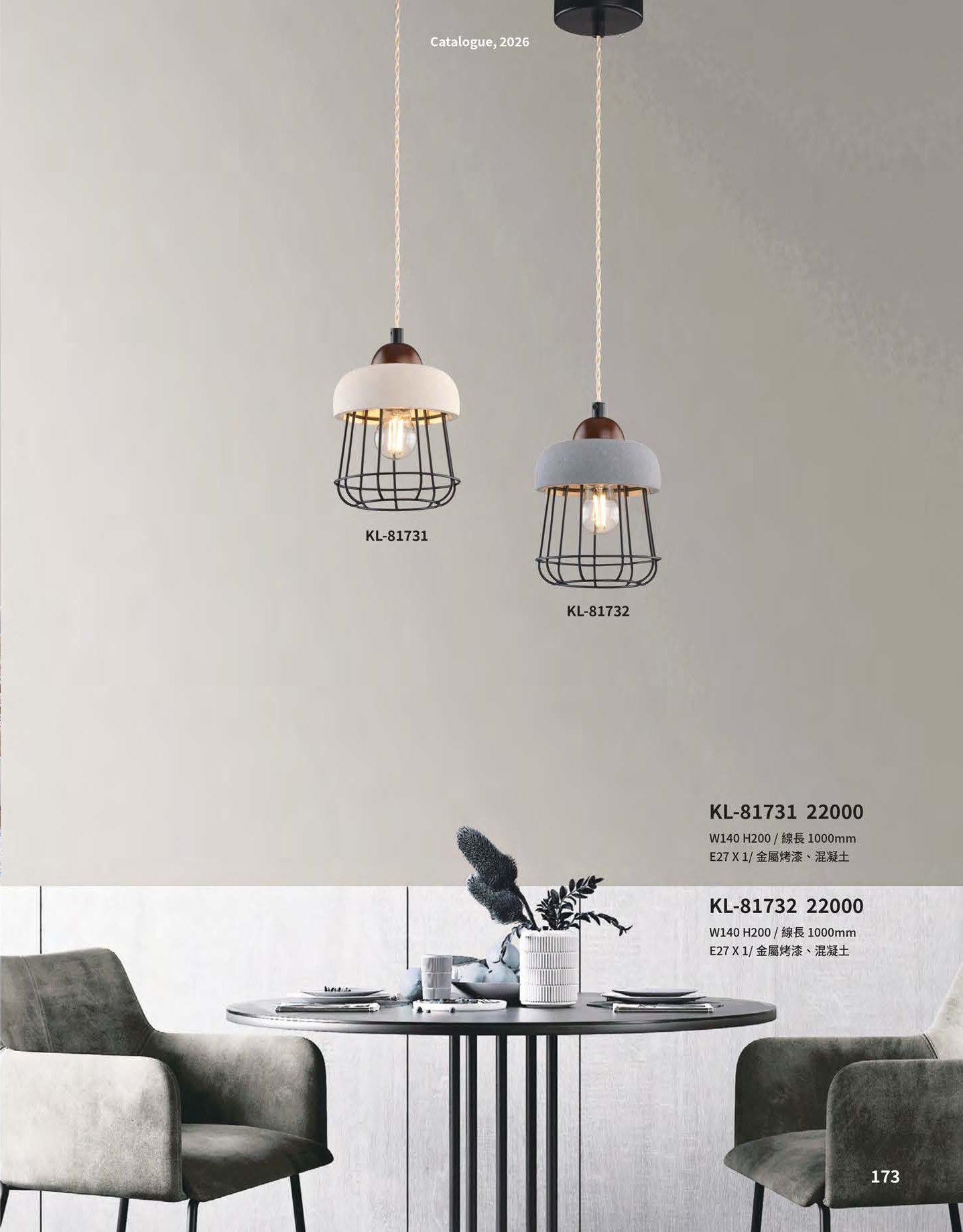 KL-81732 W140 H200 / 線長1000mm E27 X1 / 金屬烤漆、混凝土