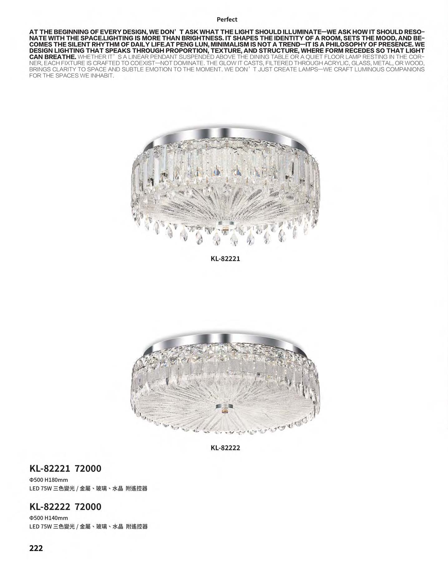 KL-82222 直徑500 H140mm LED 75W 三色變光 / 金屬、玻璃、水晶 附遙控器