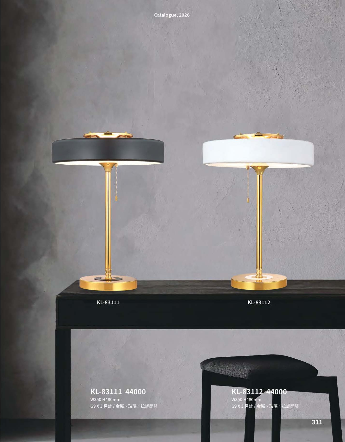 KL-83111 W350 H480mm G9 X3 另計 / 金屬、玻璃、拉鏈開關