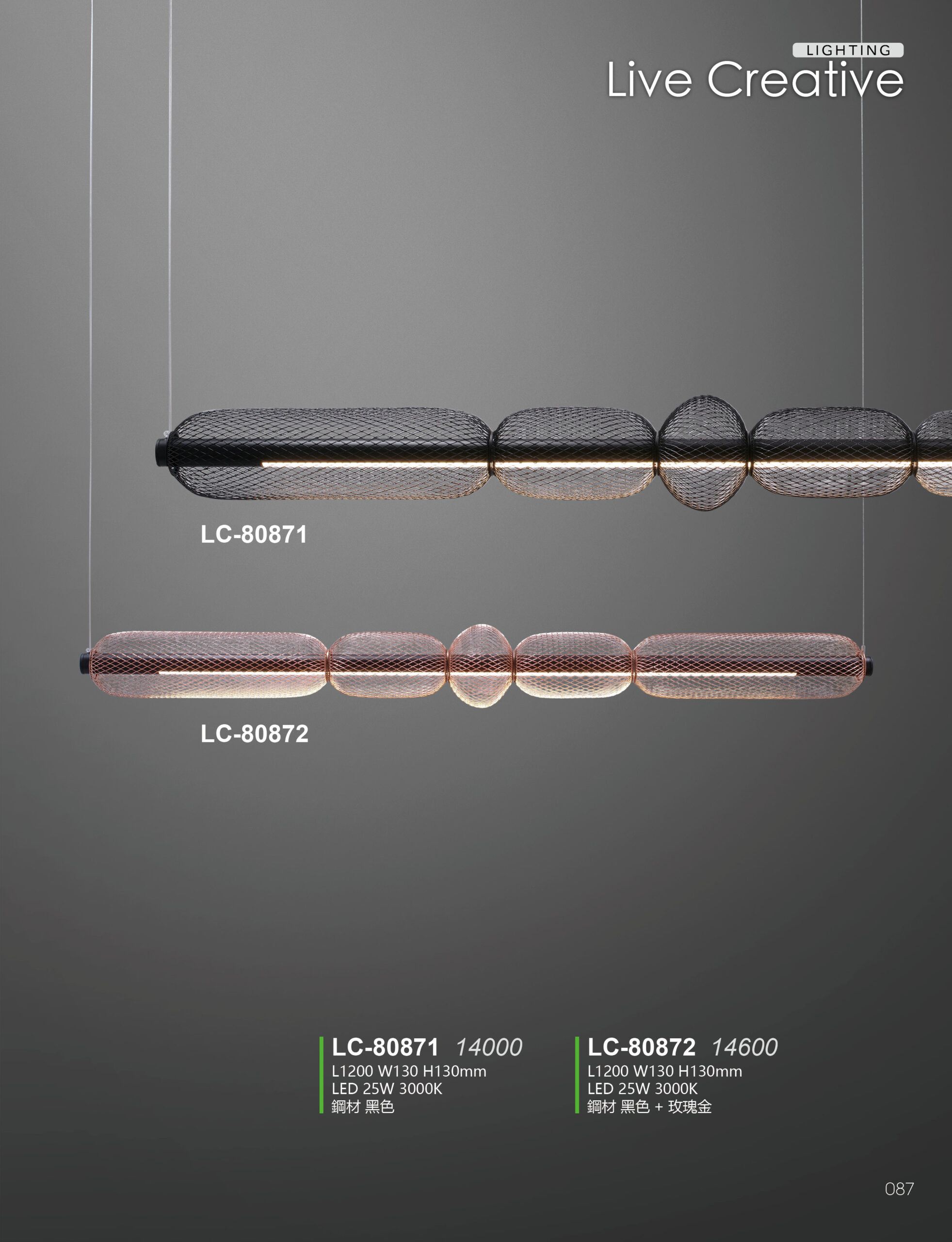 LC-80872 L1200 W130 H130mm LED 25W 3000K 鋼材 黑色+玫瑰金