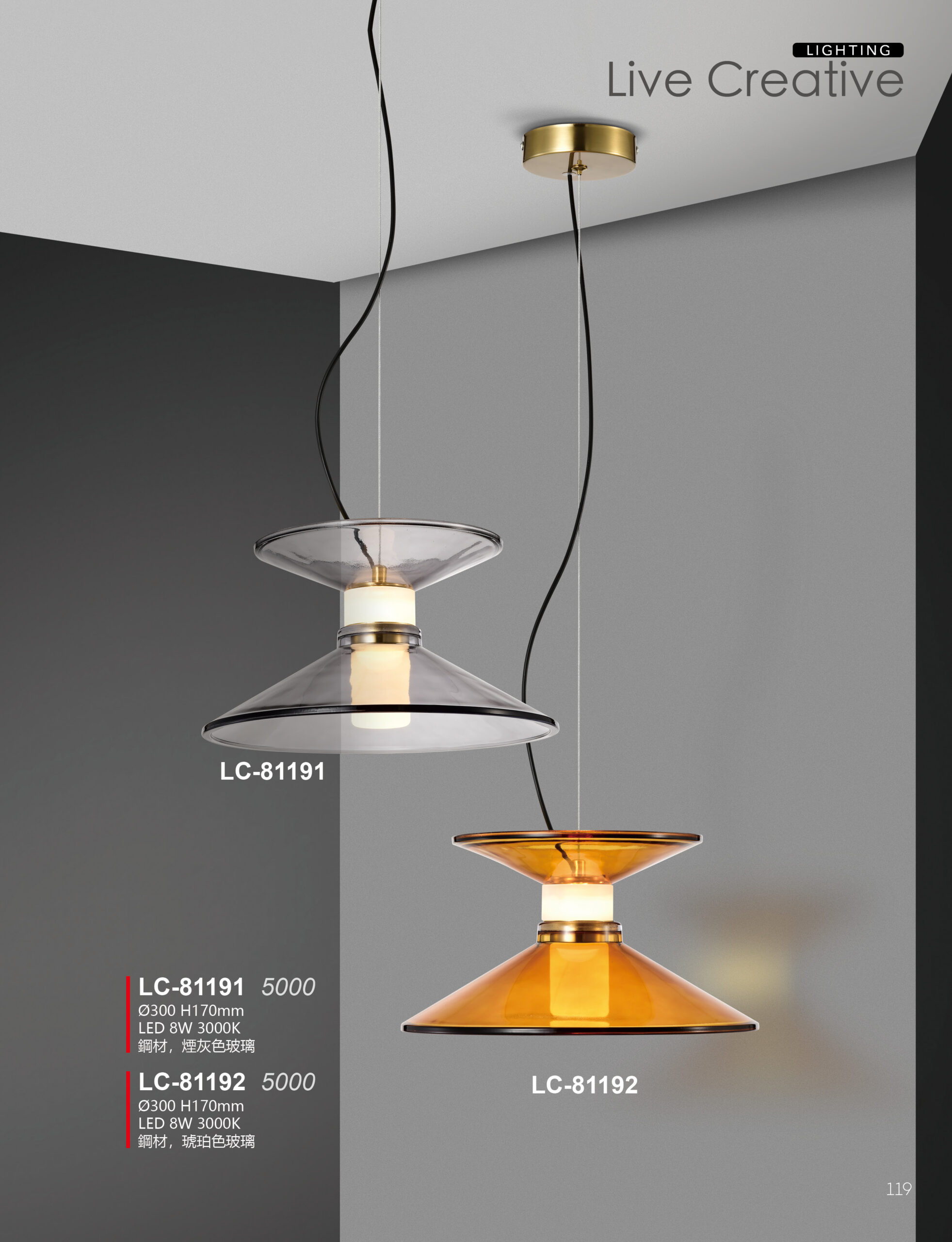 LC-81192 Ø300 H170mm LED 8W 3000K 鋼材,琥珀色玻璃