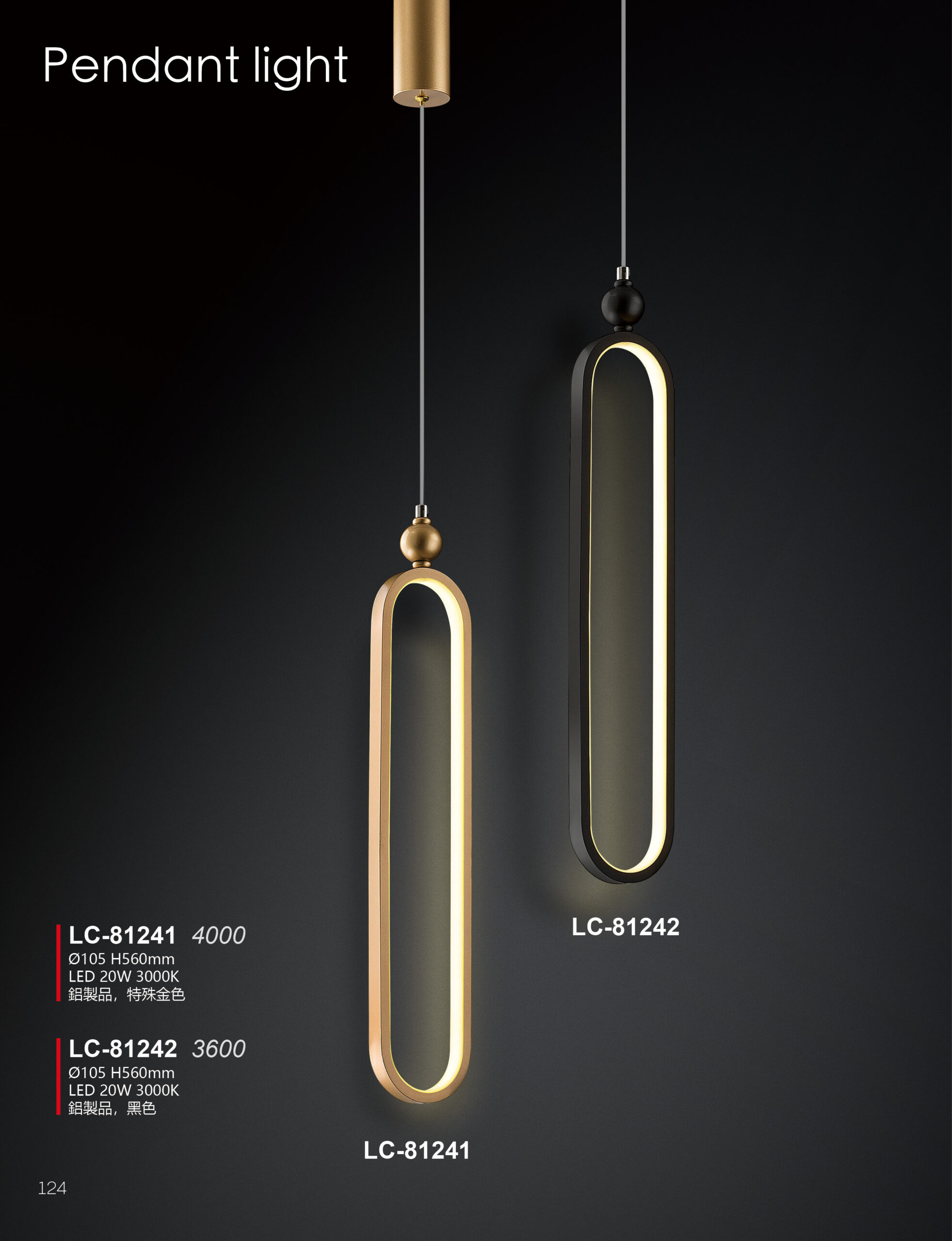 LC-81241 Ø105 H560mm LED 20W 3000K 鋁製品,特殊金色