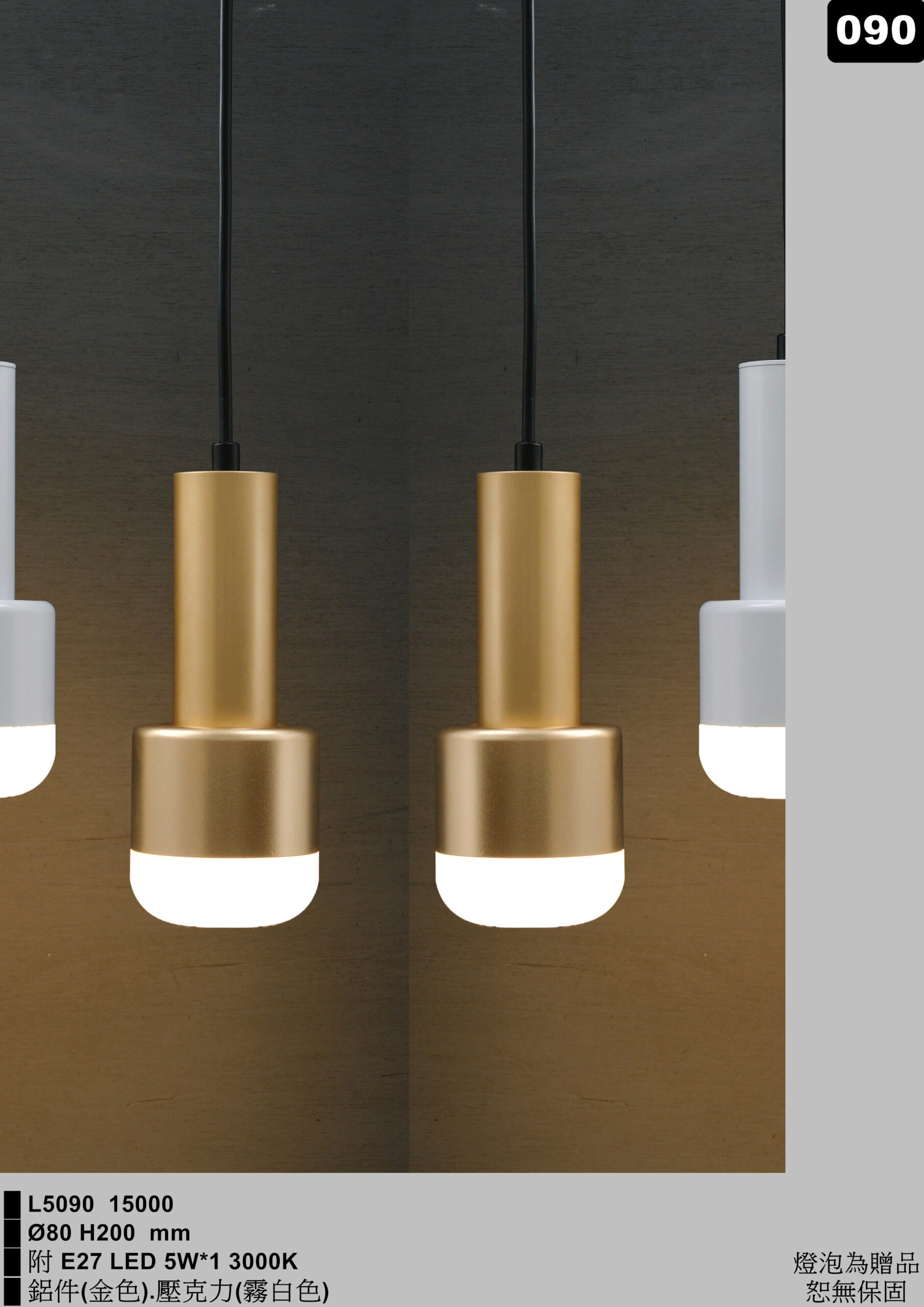 鋁件(金色)、壓克力(霧白色)