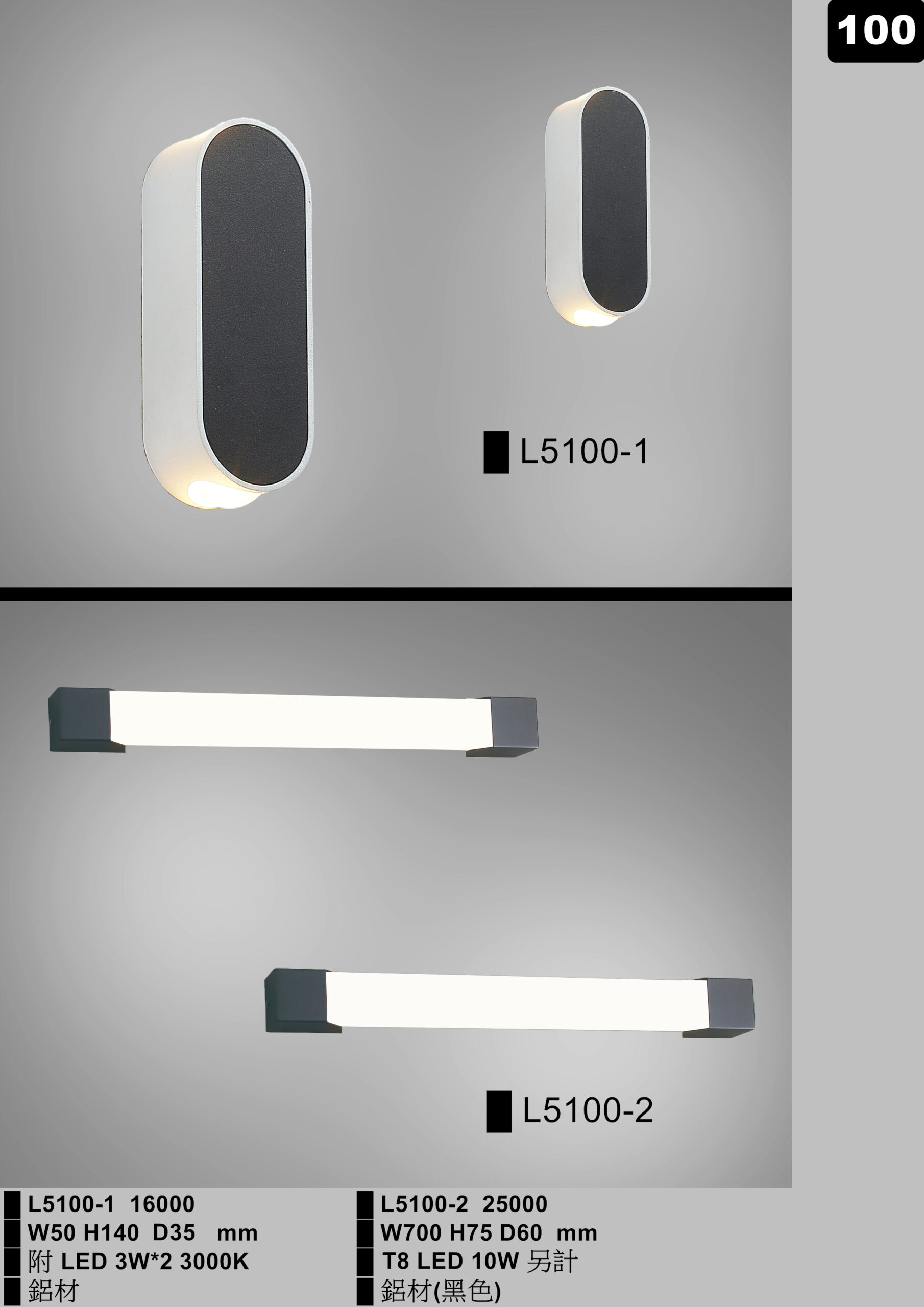L5100-1 W50 H140 D35mm 附 LED 3W*2 3000K 鋁材