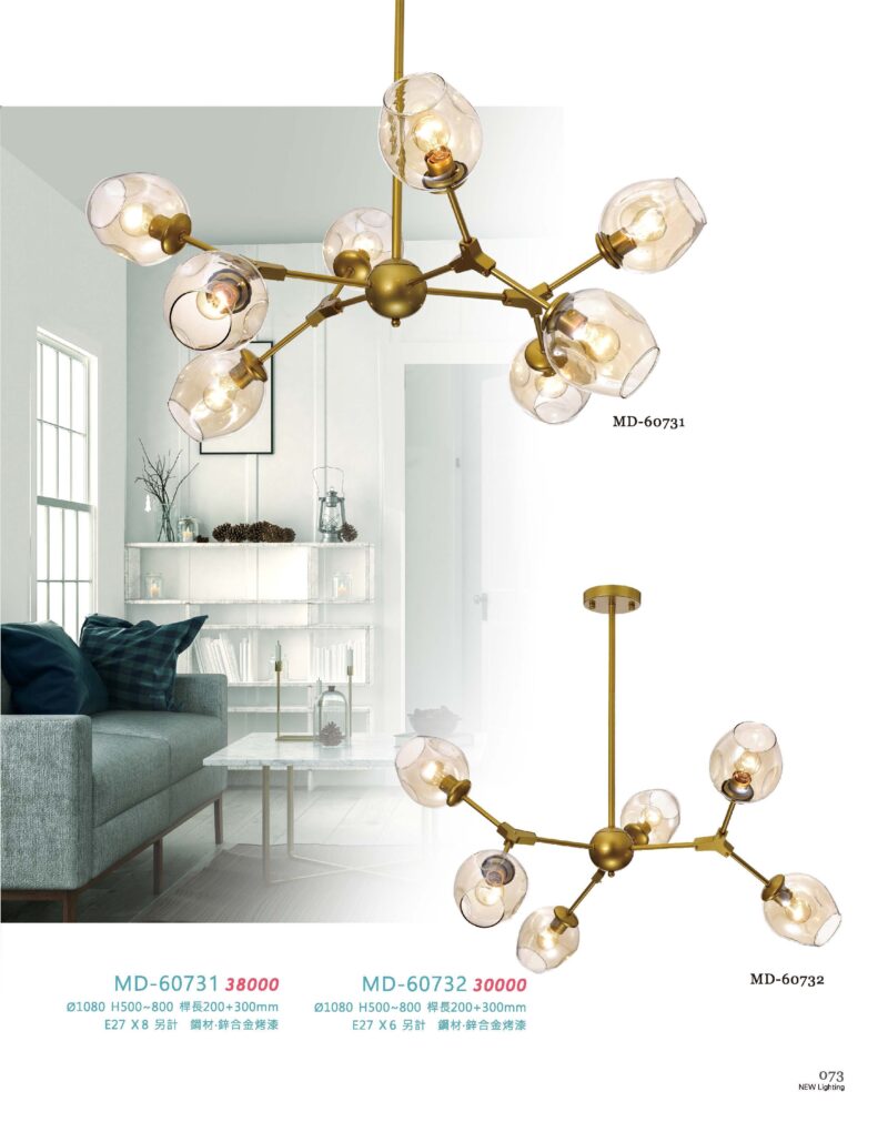 MD-60732 Ø1080 H500~800 桿長200+300m E27 X6 另計 鋼材+鋅含金烤漆