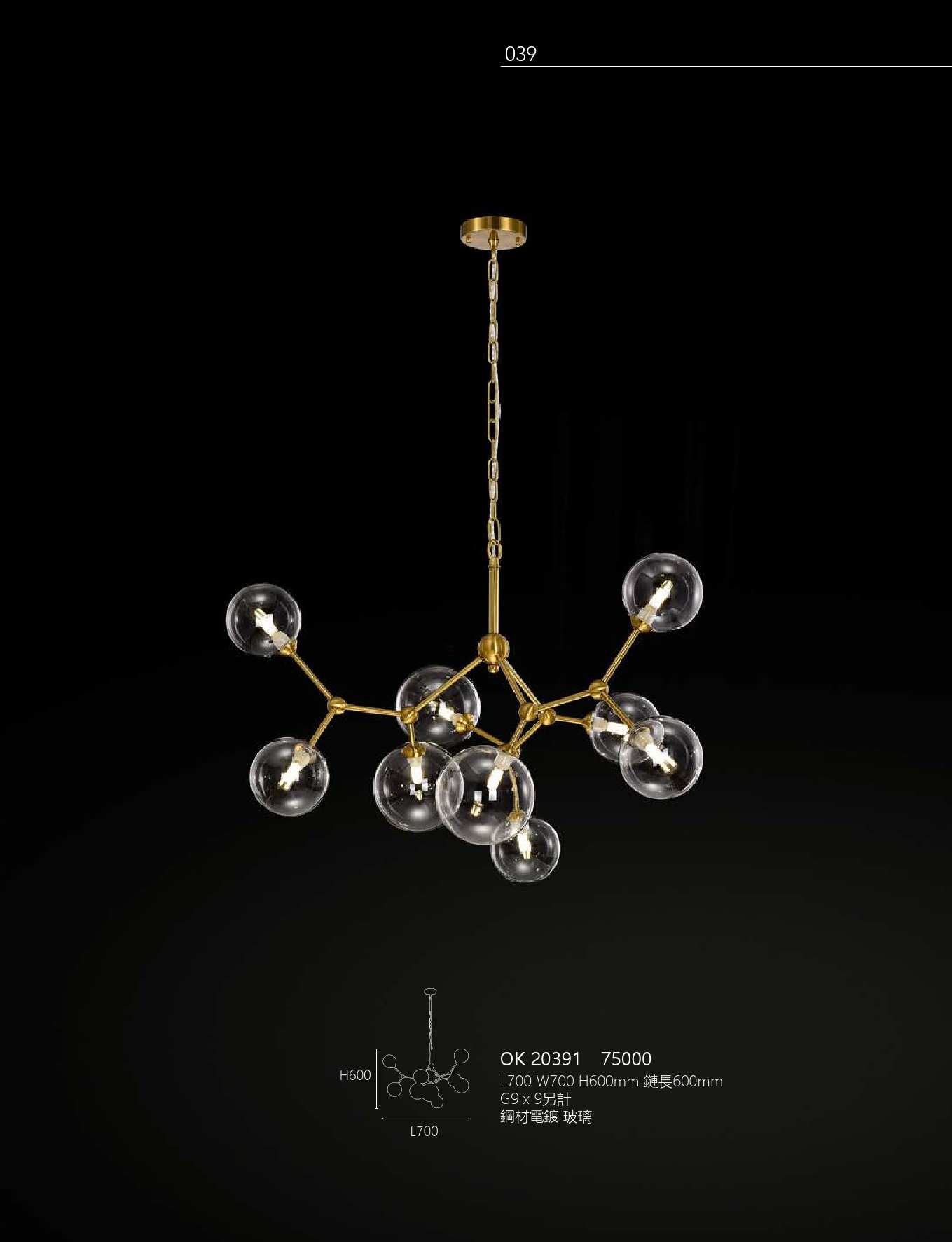 L700 W700 H600mm 鍊長600mm