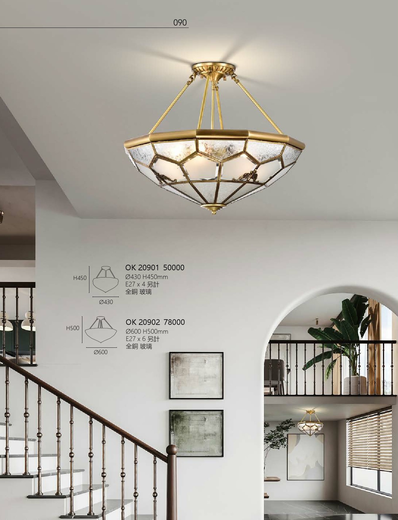 OK 20901 直徑430 H450mm E27 x4 另計 全銅 玻璃