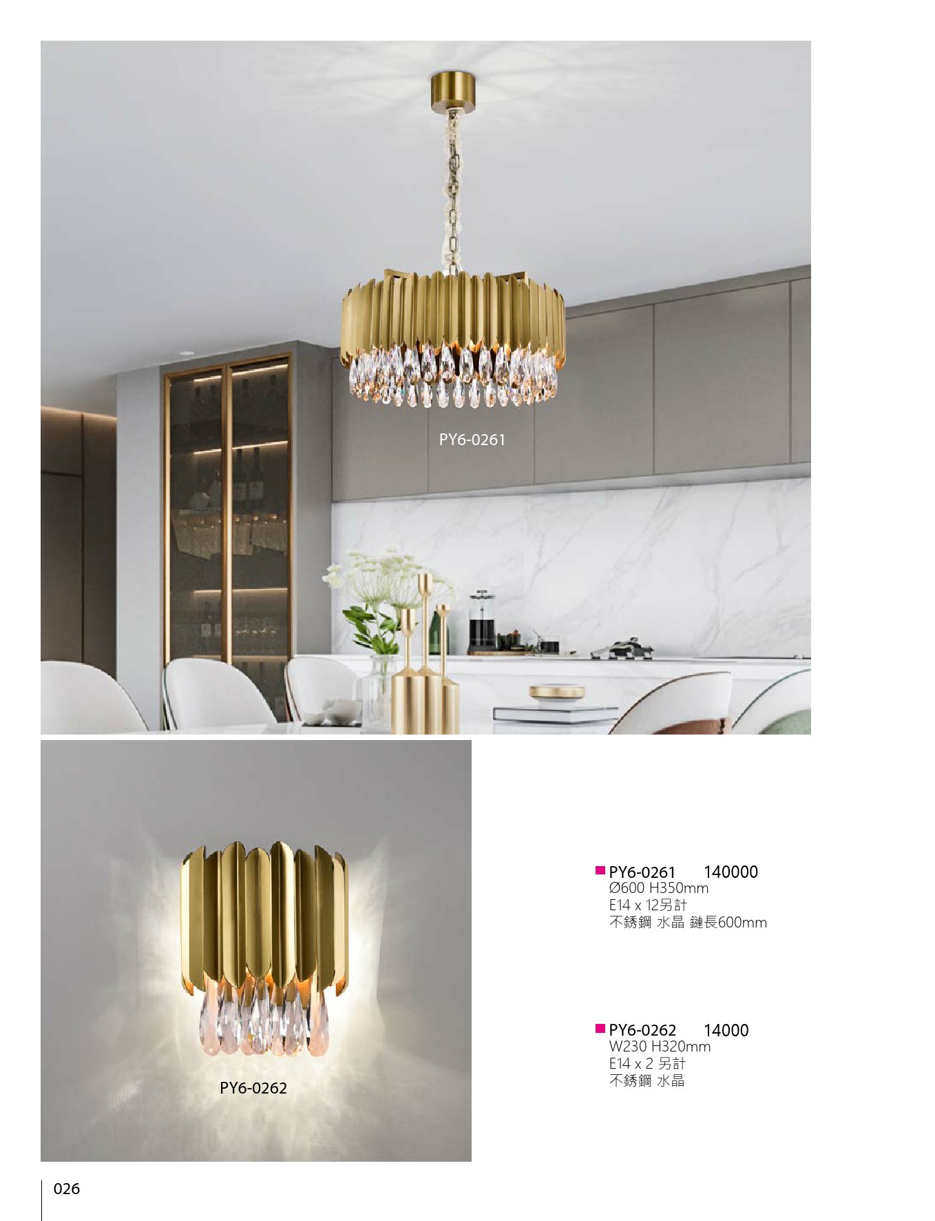 PY6-0261 W230 H320mm E14 x2 另計 不銹鋼 水晶