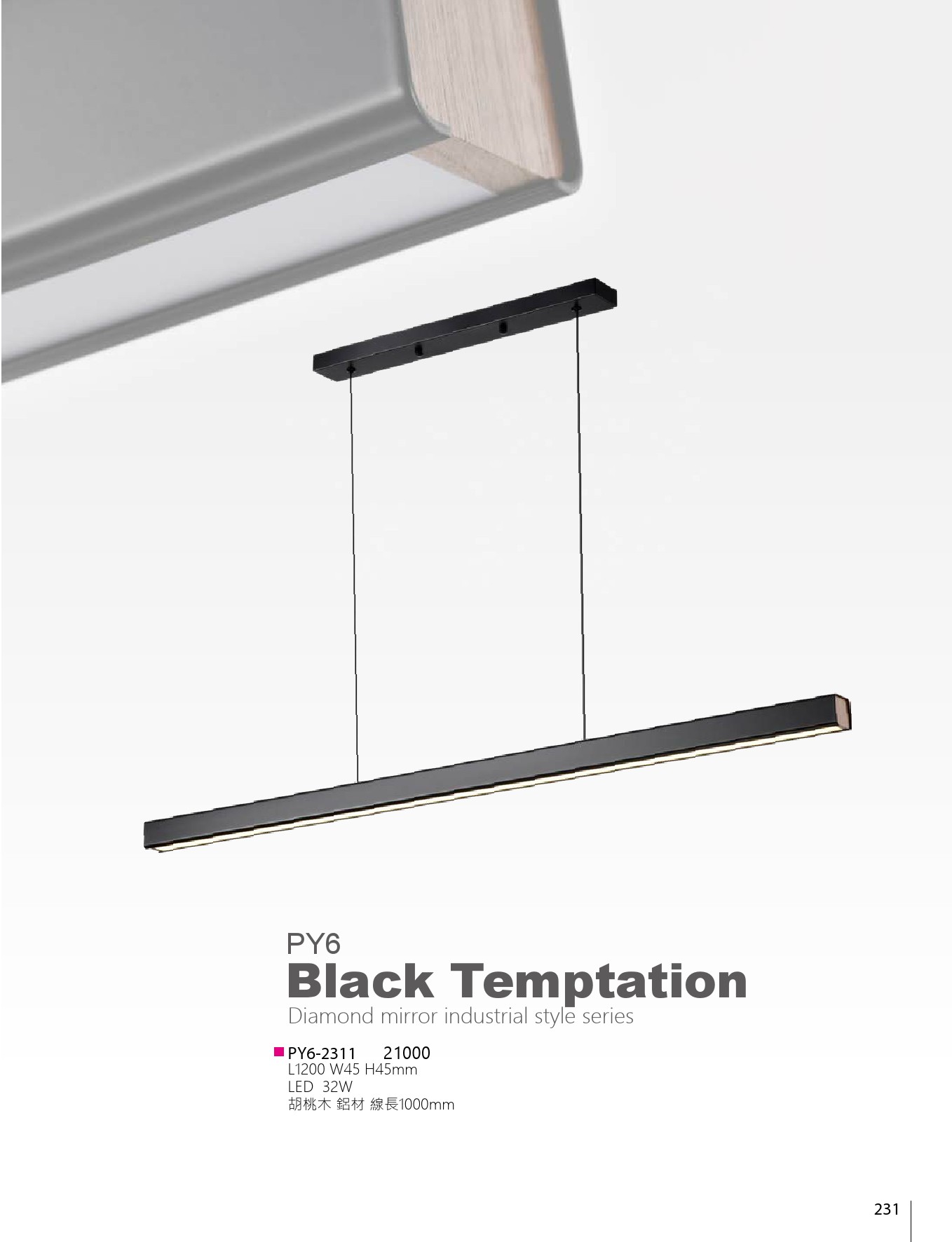 胡桃木 鋁材 線長1000mm