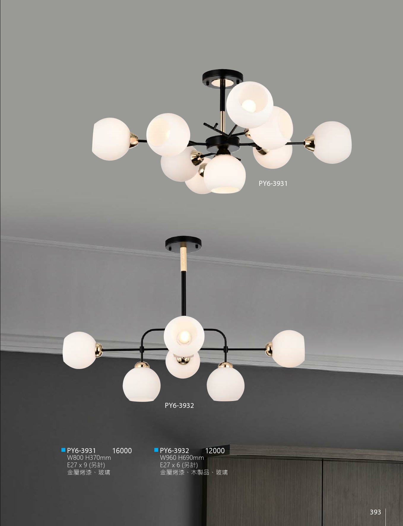 PY6-3932 W960 H690mm E27 x6 另計 金屬烤漆、木製品、玻璃