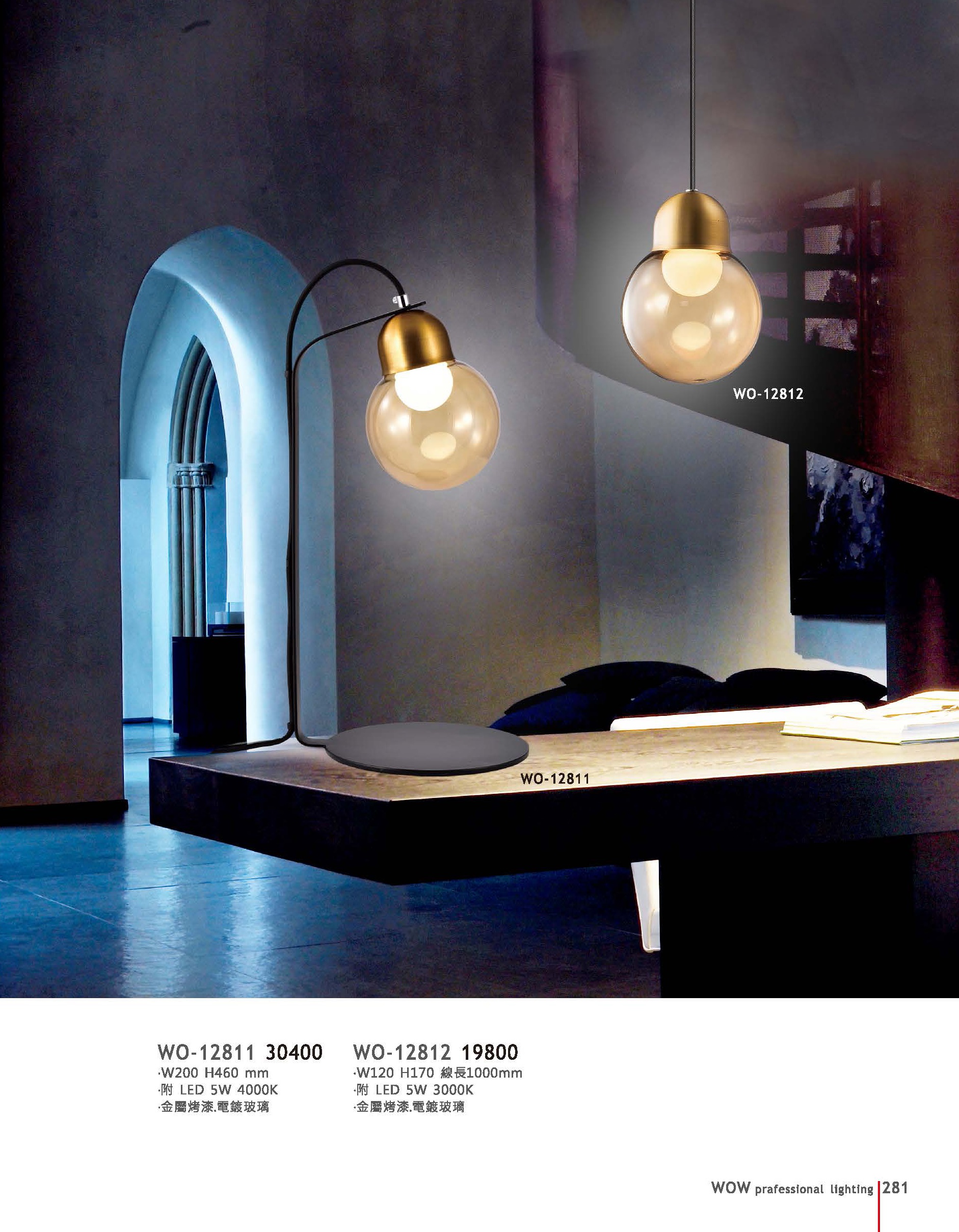 WO-12812 W120 H170 線長1000mm 附LED 5W 3000K 金屬烤漆 電鍍玻璃